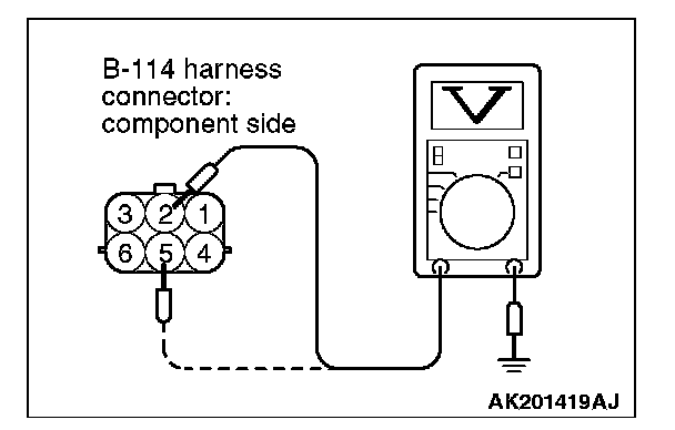 STEP 3. Measure the power supply voltage at EGR valve harness side connector B-114.