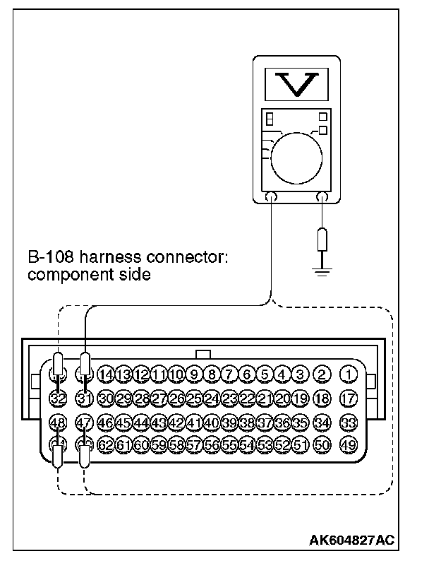 3. Measure the voltage between terminal (No. 31, No. 32, No. 47, No. 48) and ground.
