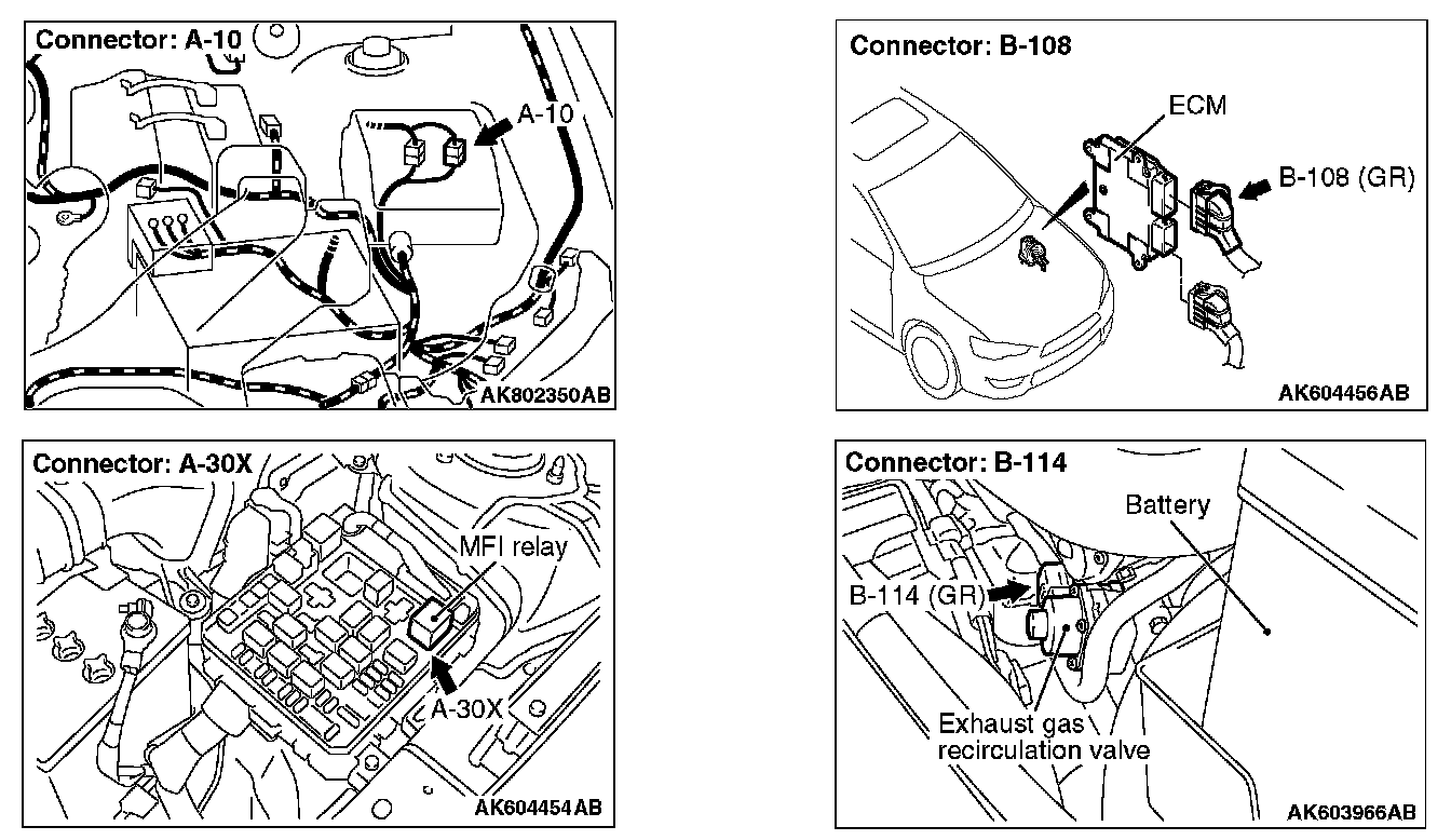 b. EGR valve connector B-114 (terminal No. 3) and ECM connector B-108 (terminal No. 32).