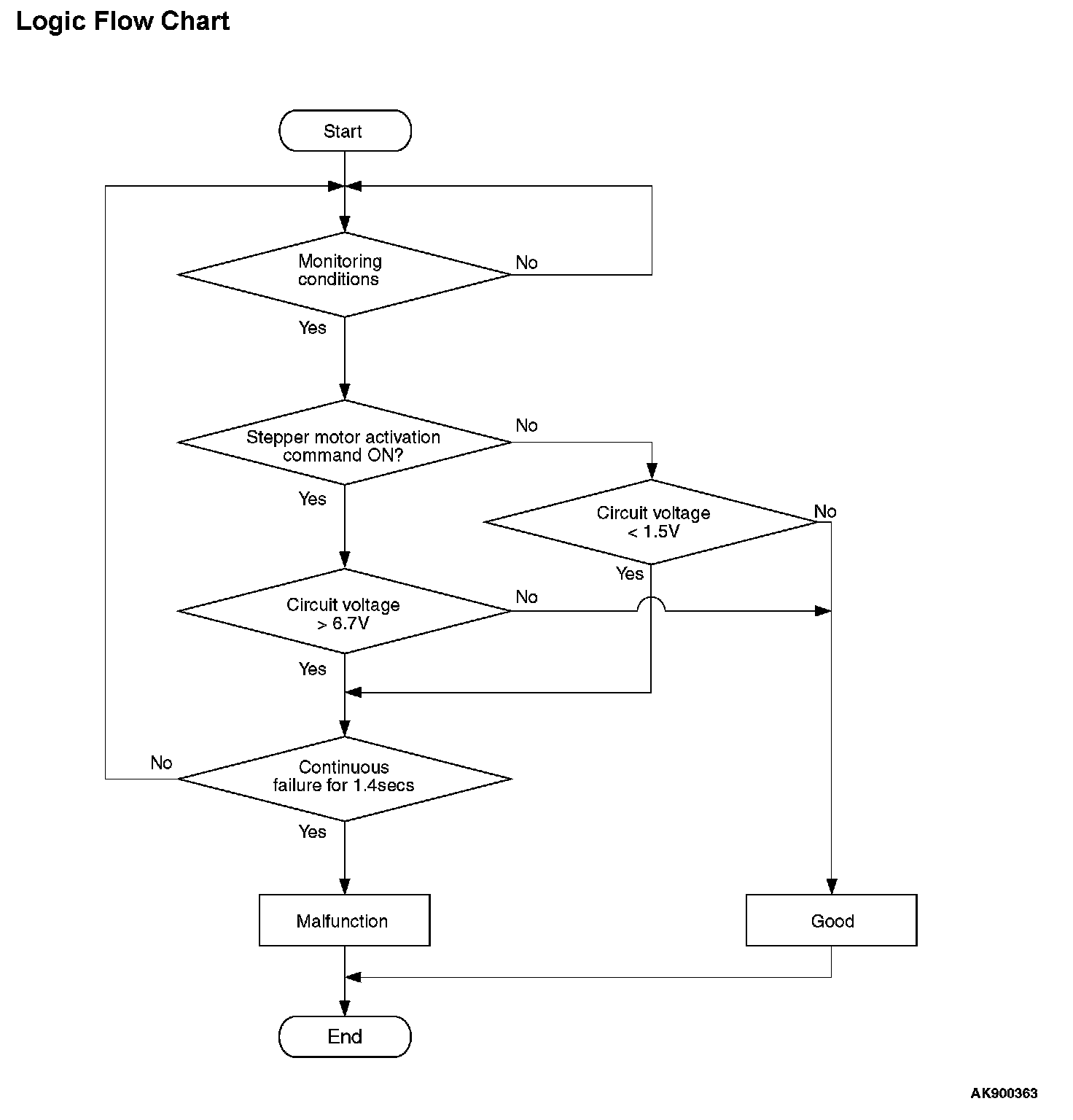 When the EGR valve (stepper motor) drive circuit voltage is over the specified range, it is judged that a malfunction exists.