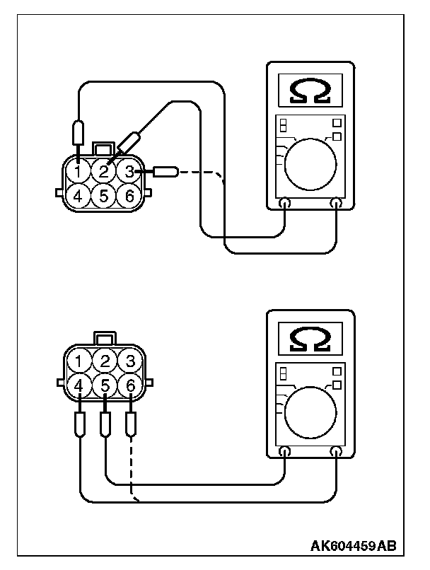 3. Measure the resistance between EGR valve side connector terminal No. 5 and either terminal No. 4 or terminal No. 6