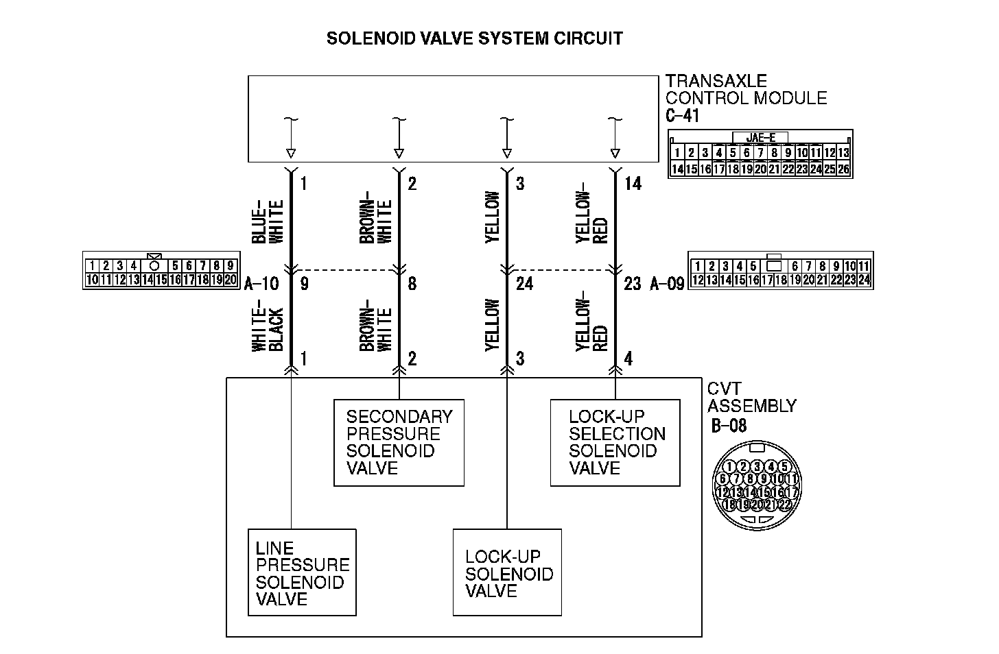 Between C-41 TCM connector (terminal No.3) and B-08 CVT assembly connector (terminal No.3)