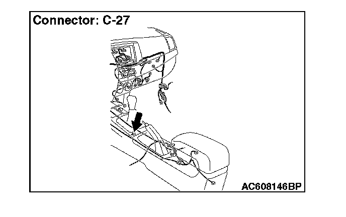 Between C-27 selector lever assembly connector (terminal No.7) and body ground