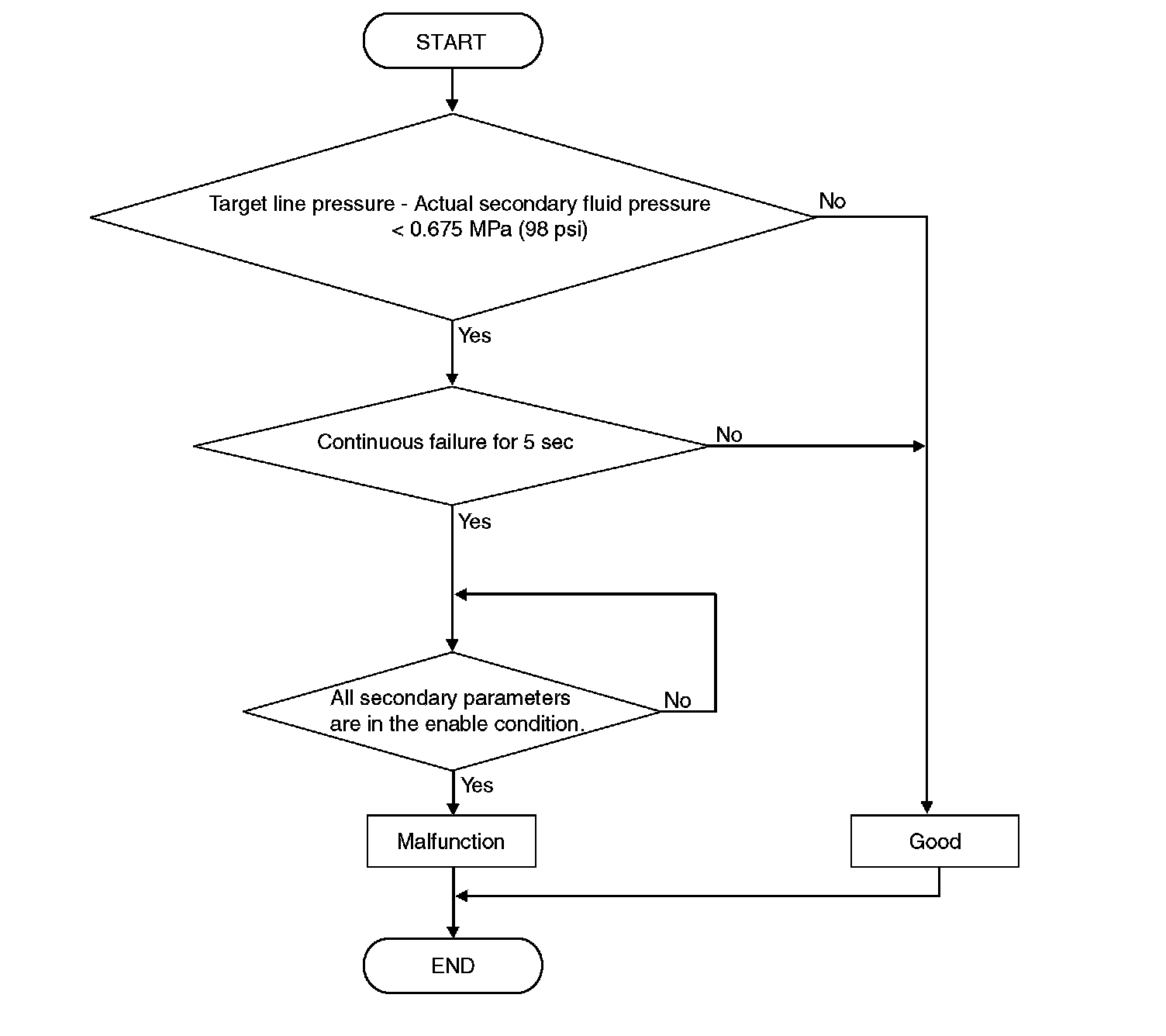 ^ The actual secondary pressure reading is 0.675 MPa (98 psi) or more, and the status over the target line pressure remains for 5 seconds.