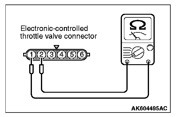 2. Measure the resistance between electronic-controlled throttle valve side connector terminal No. 1 and No. 2.