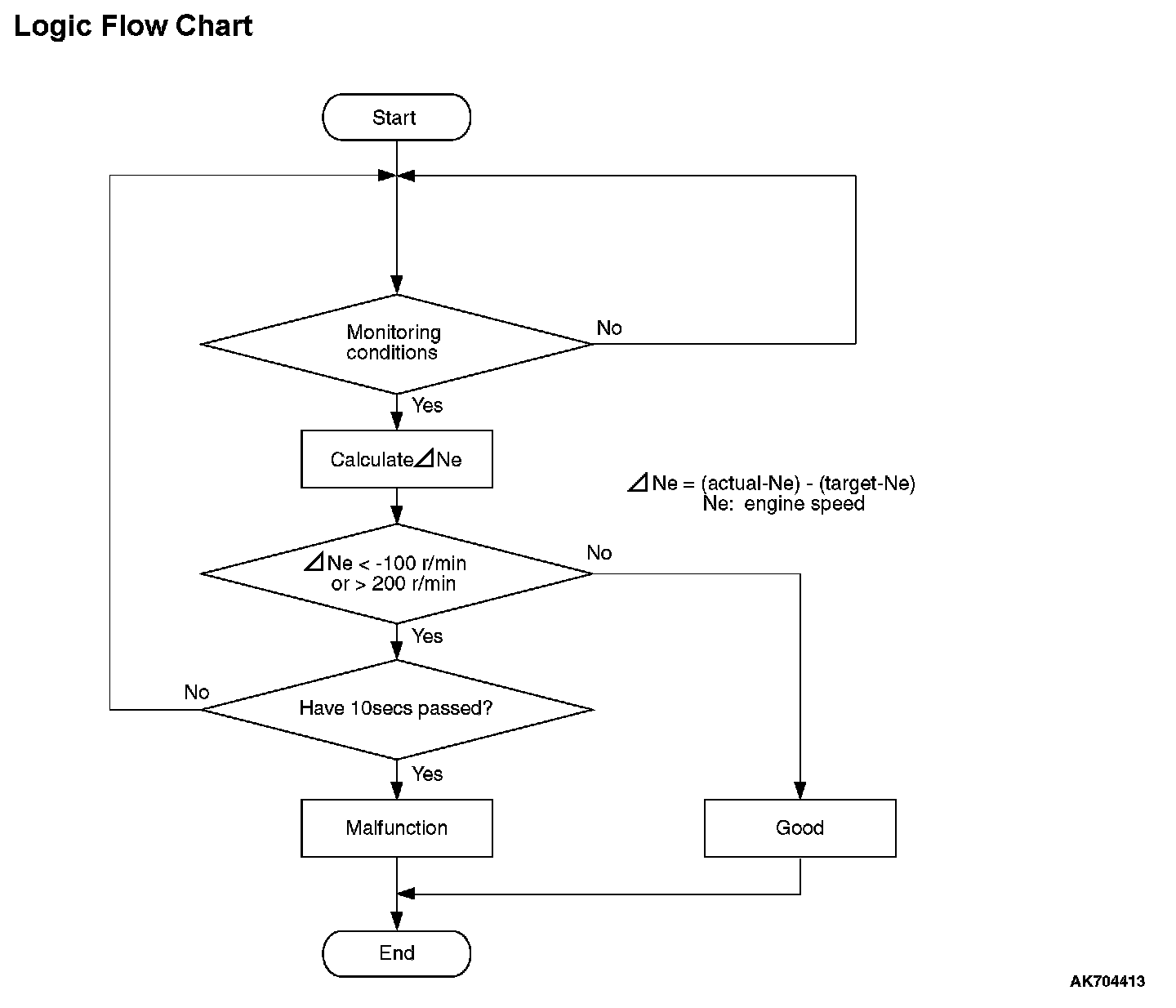 - The actual idle speed is less than the target idle speed by 100 r/min or more for 10 seconds.