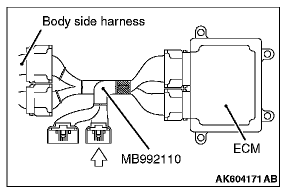 1. Disconnect all ECM connectors. Connect the power plant ECU check harness special tool MB992110 between the separated connectors.