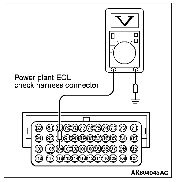 STEP 3. Measure the power supply voltage at ECM connector B-109 by using power plant ECU check harness special tool MB992110.