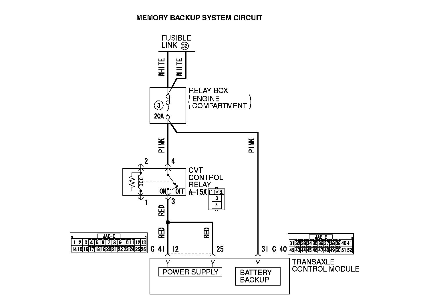 ^ Between relay box and C-40 TCM backup power supply connector (terminal No.31)
