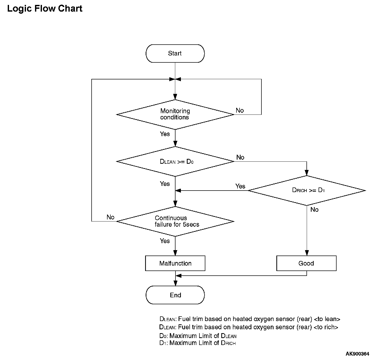 - The amount of compensated lean air/fuel ratio is output by the heated oxygen sensor (rear). The status that the amount of compensated lean air/fuel ratio is greater than the specified amount continues for 5 seconds.