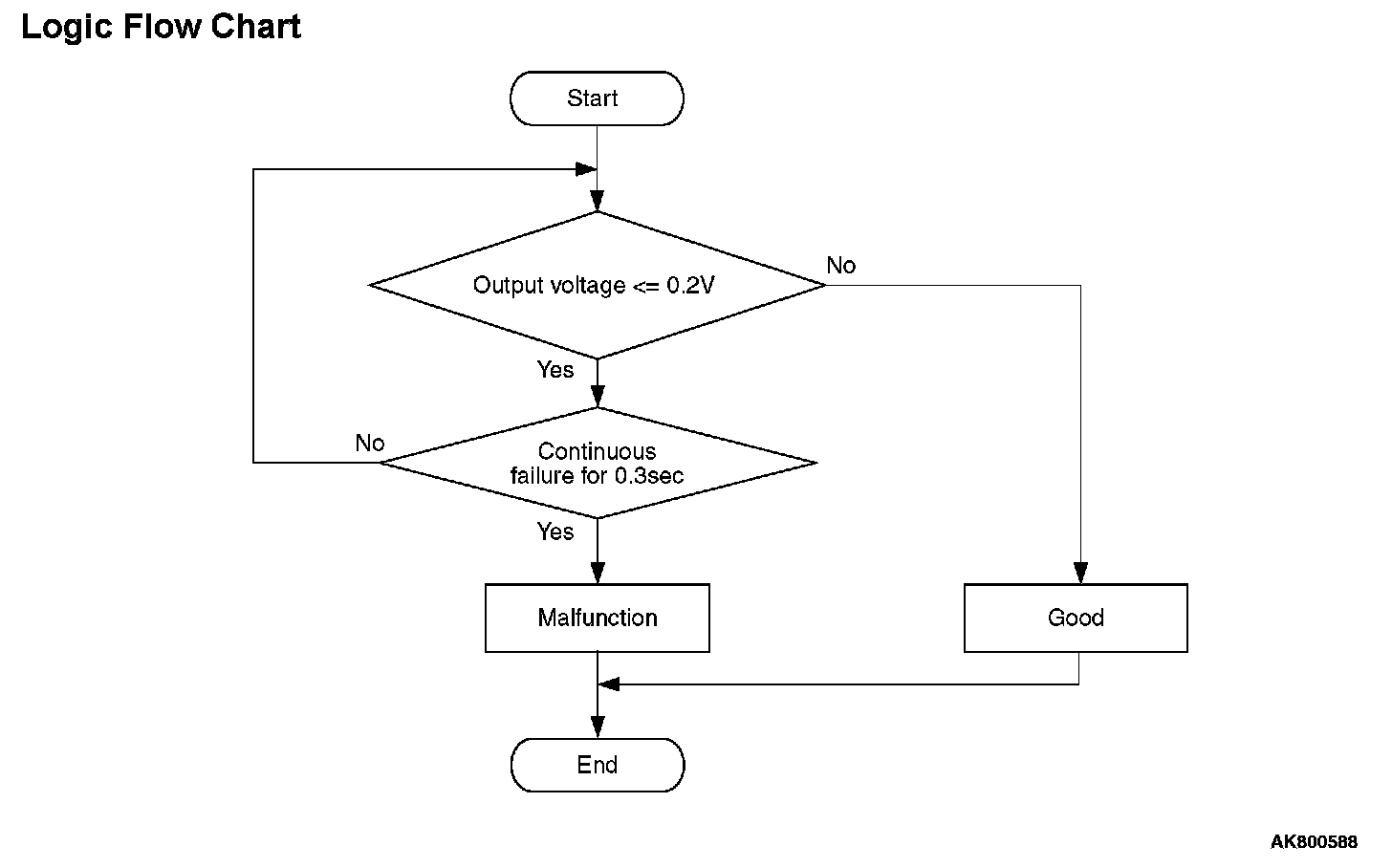 - Accelerator pedal position sensor (sub) output voltage is less than 0.2 volt for 0.3 second.