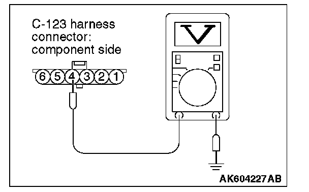 STEP 3. Measure the sensor supply voltage at accelerator pedal position sensor harness side connector C-123.