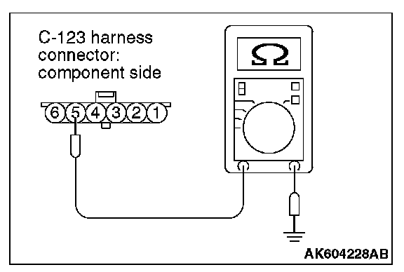 1. Disconnect the connector C-123 and measure at the harness side.