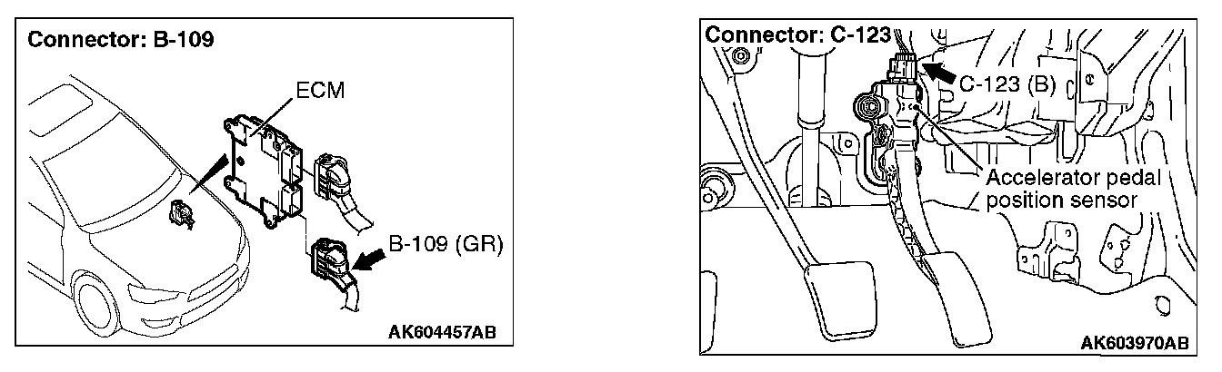STEP 6. Check for harness damage between accelerator pedal position sensor connector C-123 (terminal No. 2) and ECM connector B-109 (terminal No. 76).