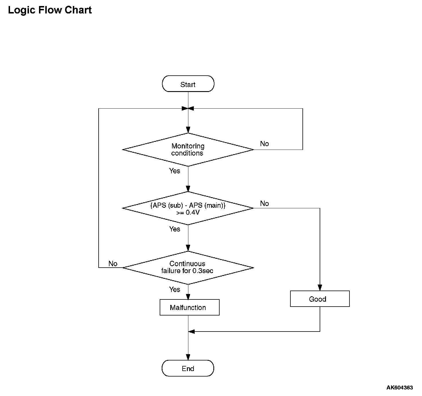 - ECM checks the accelerator pedal position sensor output signal characteristics for abnormal conditions.