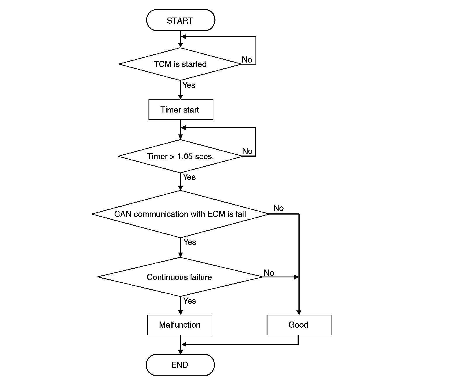 TCM receives periodic communication data from the ECM via CAN bus lines.