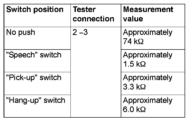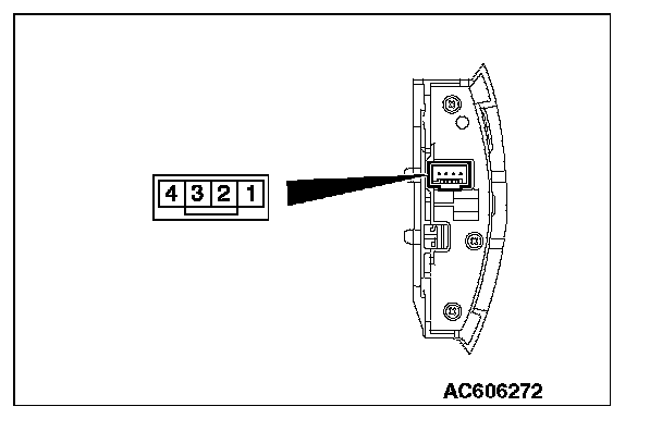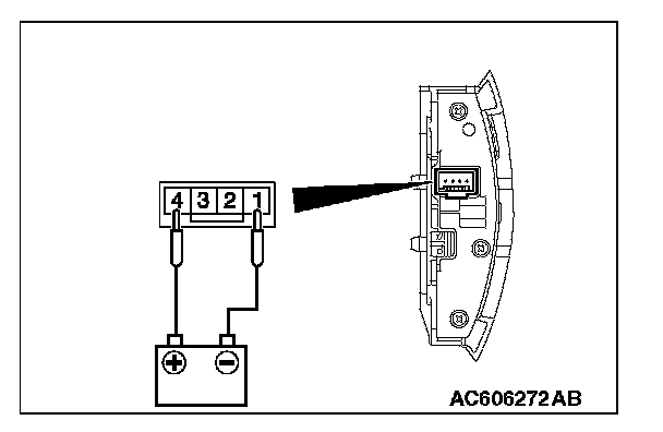 Apply the battery voltage of steering wheel voice control switch connector terminal No. 4 and 1, and check if the steering wheel audio remote control switch illuminates.