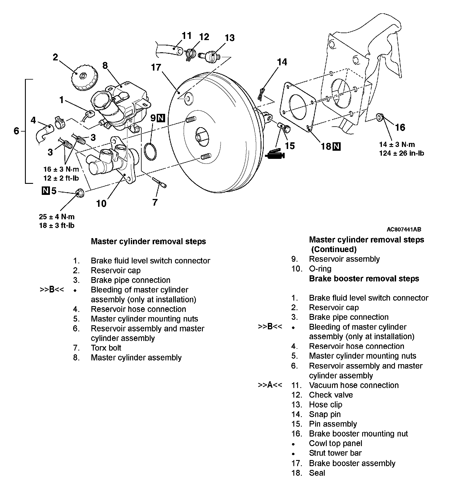 MASTER CYLINDER ASSEMBLY AND BRAKE BOOSTER ASSEMBLYREMOVAL AND INSTALLATION [2.4L Engine]