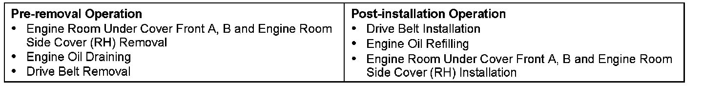 2. Tie the removed A/C compressor and clutch assembly with a string at a position where they will not interfere with the removal and installation of engine oil pan.