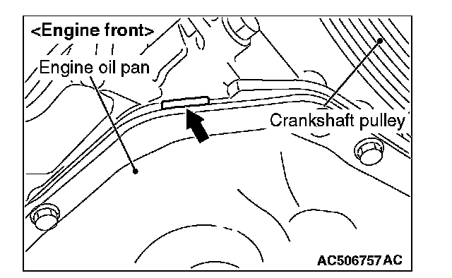2. Insert special tool MD998727 from the engine oil pan removal groove of the cylinder block assembly.