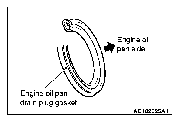 Replace the engine oil pan drain plug gasket with a new one. Install the new engine oil pan drain plug gasket in the direction shown in the illustration.