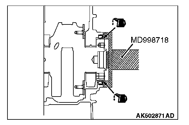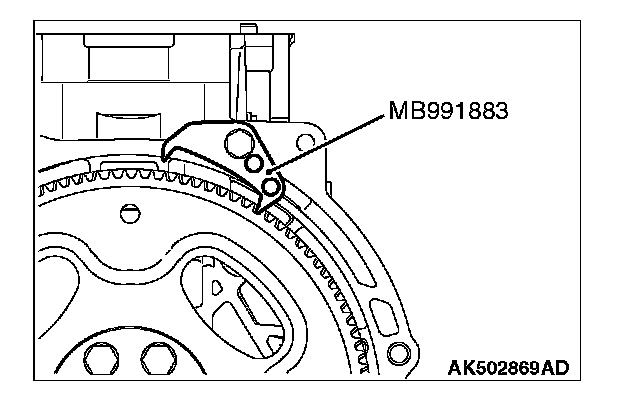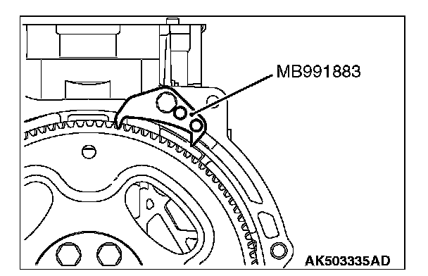 2. Use special tool MB991883 to secure the drive plate or flywheel bolts.