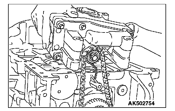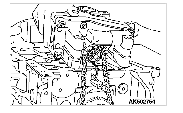 4) By giving four clockwise rotations or more to the balancer shaft sprocket, the oil is supplied to the oil pump and the balancer shaft bearing.