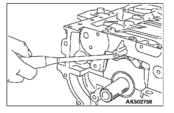 4. Insert a hexagonal bar wrench (3 mm [0. 12 inch]) as illustrated to prevent the balancer shaft module sprocket from moving.
