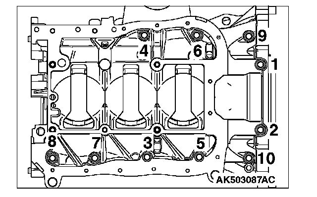 9. Tighten bolts to the specified tightening torque of 20 Nm (14 ft. lb.) according to the assembly order in the illustration, retighten them to 44 Nm (32 ft. lb.), and then completely loosen them.