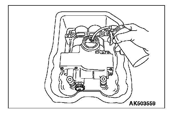1. When the new balancer shaft module is installed, supply oil to the oil pump and the balancer shaft bearing in the balancer shaft module using the following procedures.