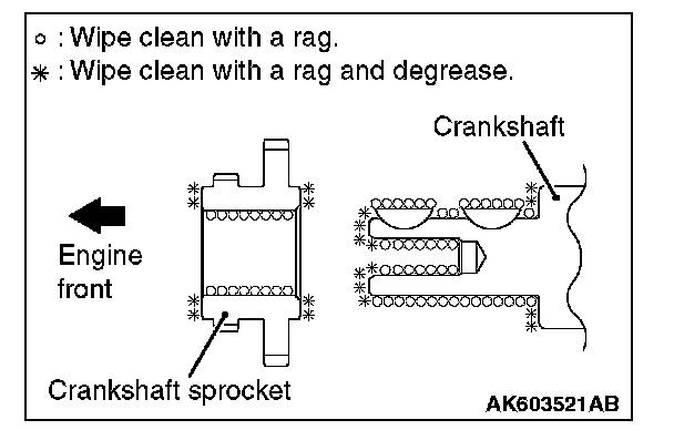 2. Wipe the dirt on the crankshaft sprocket and the crankshaft using a rag, and then remove the grease from the portion shown in the illustration.