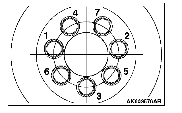 6. Tighten drive plate bolts or flywheel bolts to specified tightening in the order shown in the illustration.