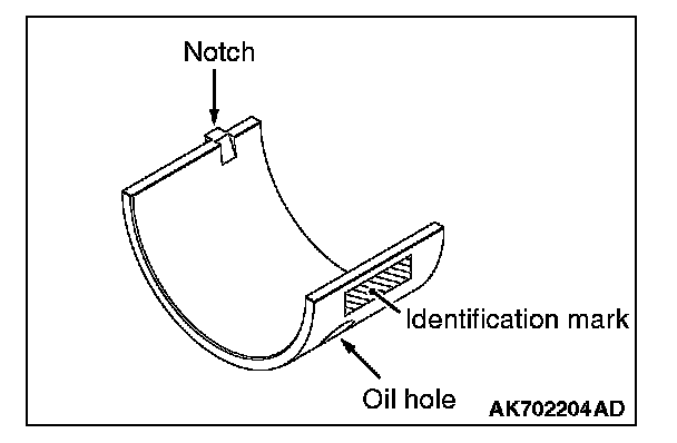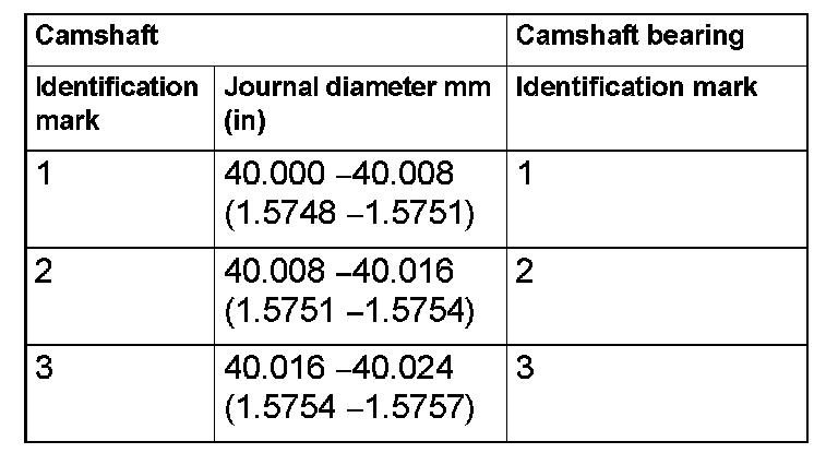 1. When replacing a camshaft bearing, select a bearing with the size corresponding to the identification mark in the table below.