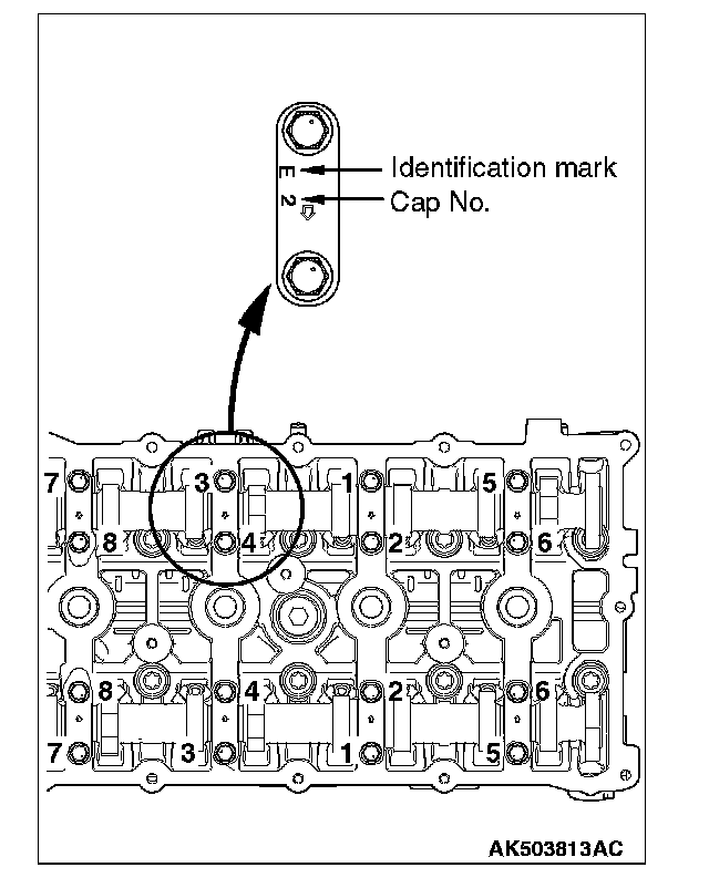3. The identification mark of the camshaft bearing is painted at the illustrated position.