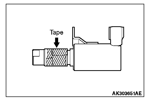 ^ Wind non-adhesive tape (seal tape, etc.) around the notch of the oil passage of the oil feeder control valve before installing the O-ring to prevent damage. Damage to the O-ring causes oil leakage.