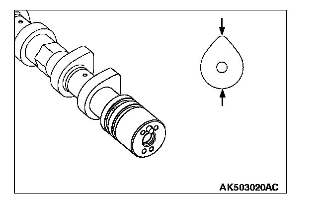 Measure camshaft height (camshaft major axis). If the height exceeds the limit, replace the camshaft.