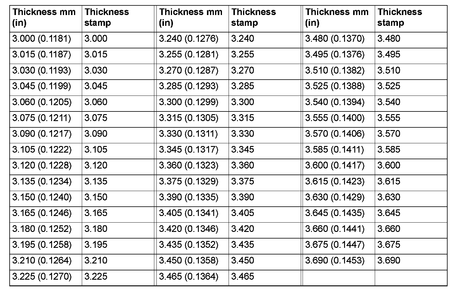 2. If the measured value in the table value is not in agreement with the value in the table to the thickness stamp, replace the valve tappet.