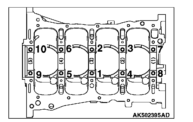 4. Tighten crankshaft bearing cap bolts to specified torque according to the tightening order.