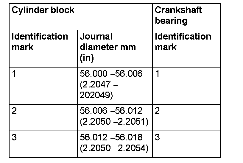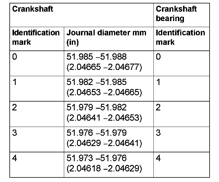 1. When replacing the crankshaft bearing upper, select a bearing with the size corresponding to the crankshaft journal diameter in the table below.