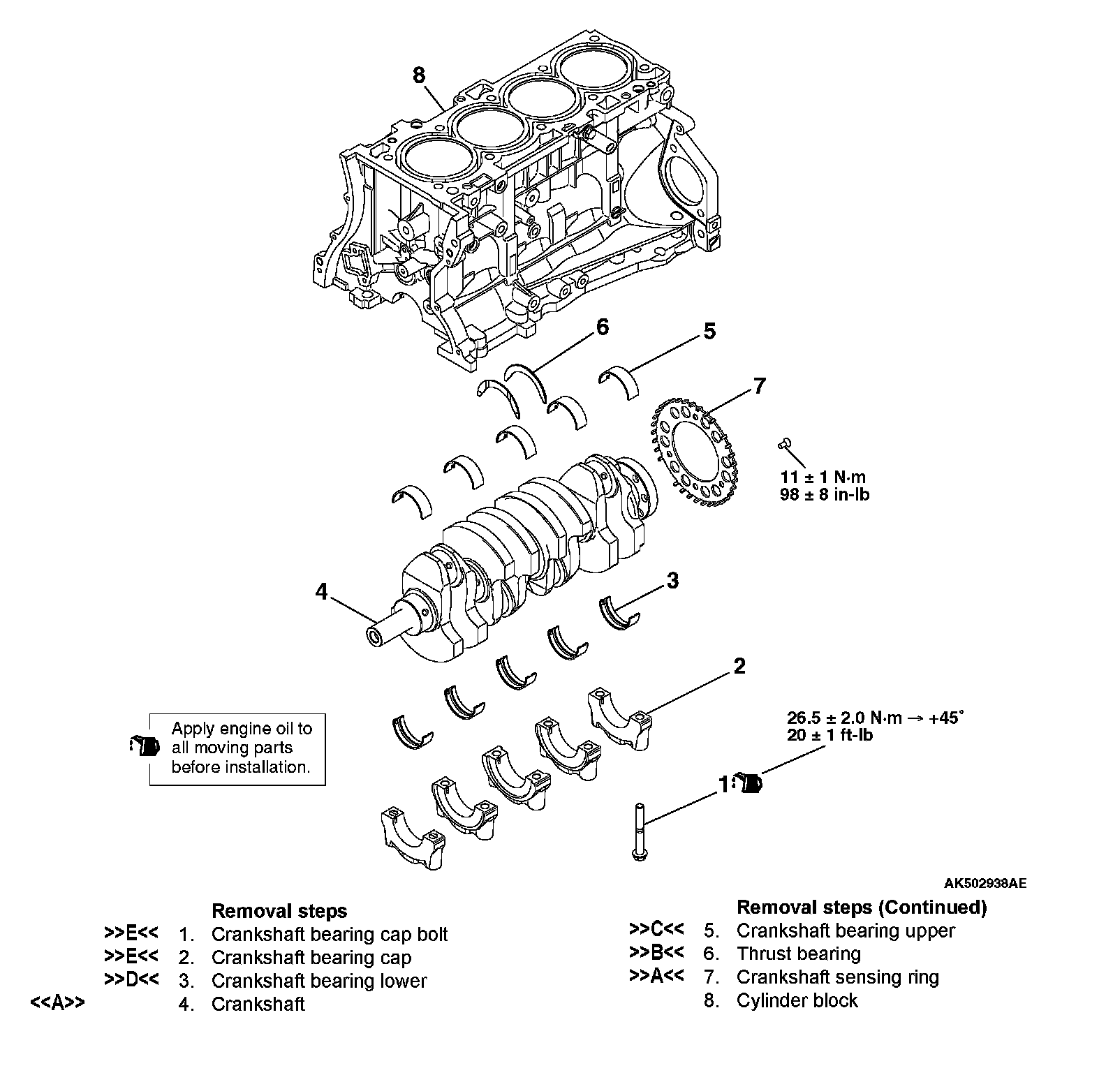[E] CRANKSHAFT BEARING CAP CRANKSHAFT BEARING CAP BOLT INSTALLATION