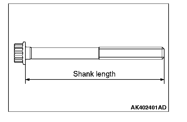 2. Make sure that the underhead length of the bolt is at or below the limit before installing the crankshaft bearing cap bolt. If the length exceeds the limit, replace the bolt with a new one.