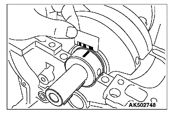 1. Install the thrust bearing on the Number 3 bearing on the cylinder block side. Application of engine oil makes the installation easy.