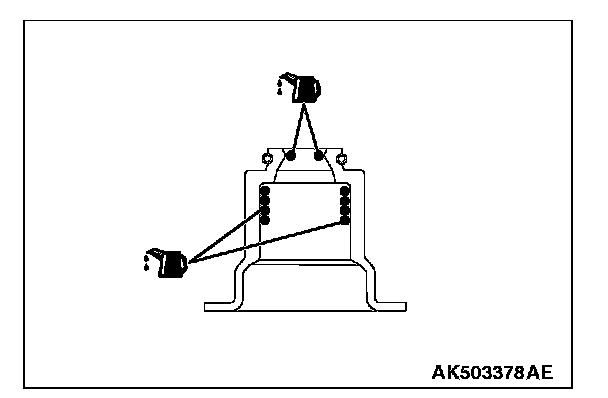 2. Apply an appropriate amount of engine oil to top and bottom surfaces of washers and threaded portion of bolts.