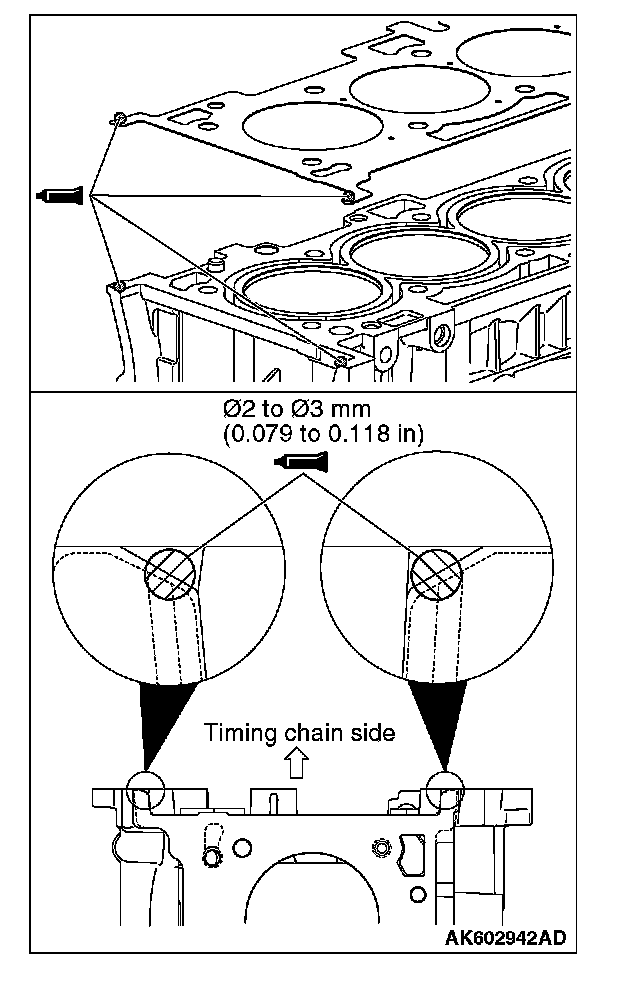 3. As shown in the illustration, apply a 2.5 ± 0.5 mm (0.1 ± 0.02 inch) of sealant to the top face of cylinder block.
