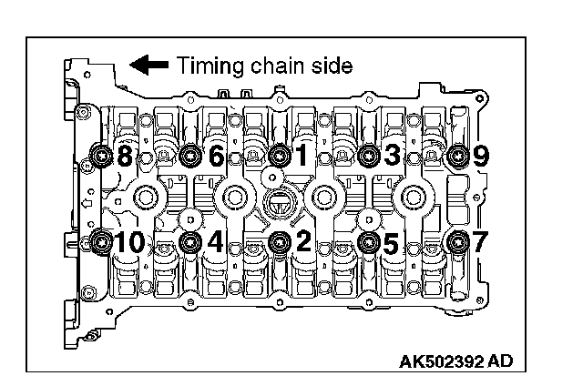NOTE: Bolts and washers are different parts for bolts on the timing chain side.