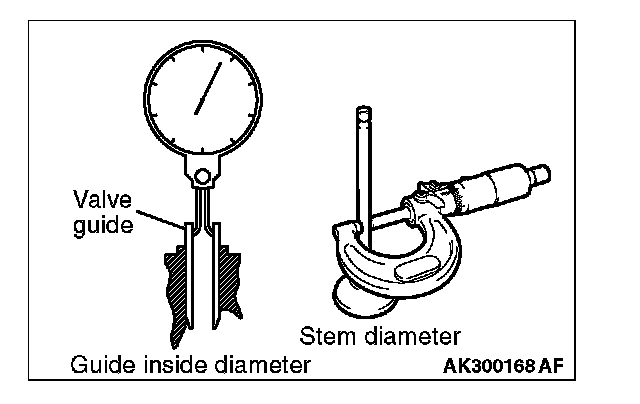 Measure clearance between the valve guide and valve stem. If the clearance exceeds the limit, replace the valve guide or valve, or both.