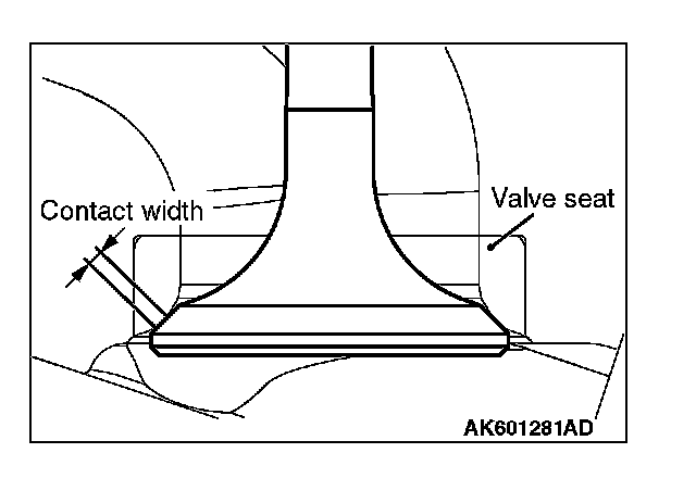 Assemble the valve, then measure the contact width. If the measurement exceeds the specified limit, replace the valve seat.