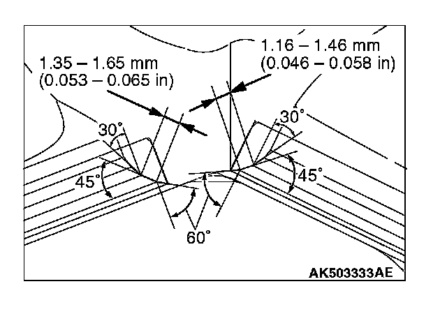 2. Repair the valve seat so that seat width and seat angle are to the specified shape.