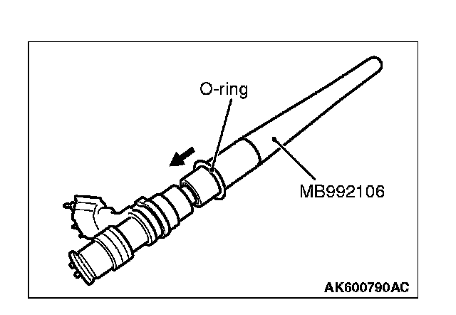 2. When inserting an O-ring into the injector on the injection nozzle side, use special tool MB992106 to gradually expand the O-ring, and fit it in place.