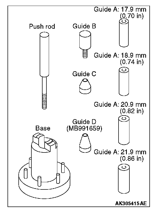 Special tool MB998780 consists of parts shown in the illustration. Use also special tool MB991659 to remove the piston pin.